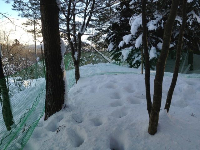 買っておいたネットを木に這わせて仮設ラン完成