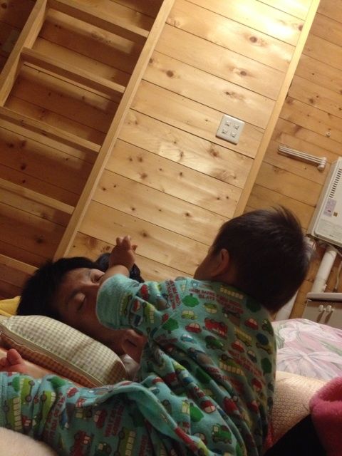 2日目の夜もパパより遅くまで起きてて、寝てるパパの鼻に歯ブラシを突っ込んで遊んだりしたけど
