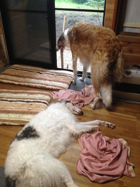 ブッチは物足りないみたいですが、バジルは雨嫌いなのですぐにゴロン