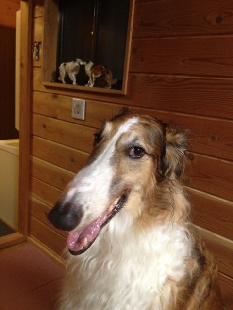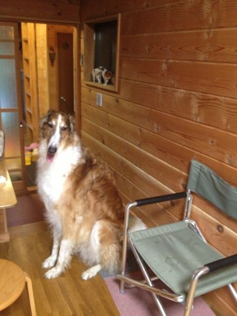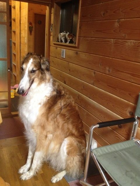 食事中の私達の横で、お利口に座るブッチ