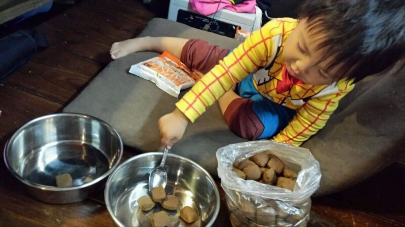 (ロイヤルカナンのビックフードはあちこちに持って動いて食べてしまうので、前もって細かく砕いてあります