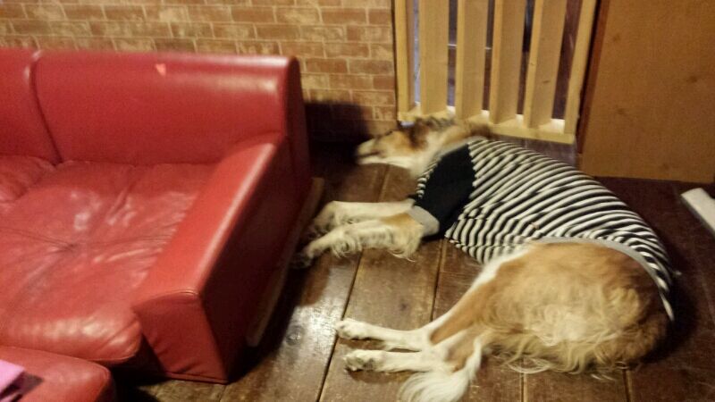 お腹が空くと、だいたいココで座って待ってるんですが、なかなか準備してもらえないと横になって待ってます