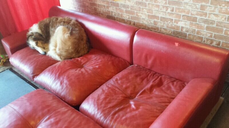 起きてきてすぐ、ソファーの隅っこで丸まってました