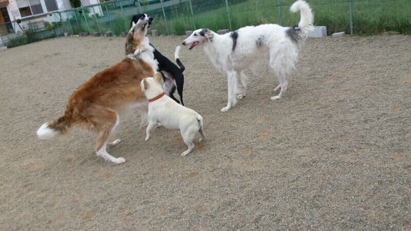 一番若いプリークリー(ダル&ボーダーmix)の元気さに、皆のテンション上がります