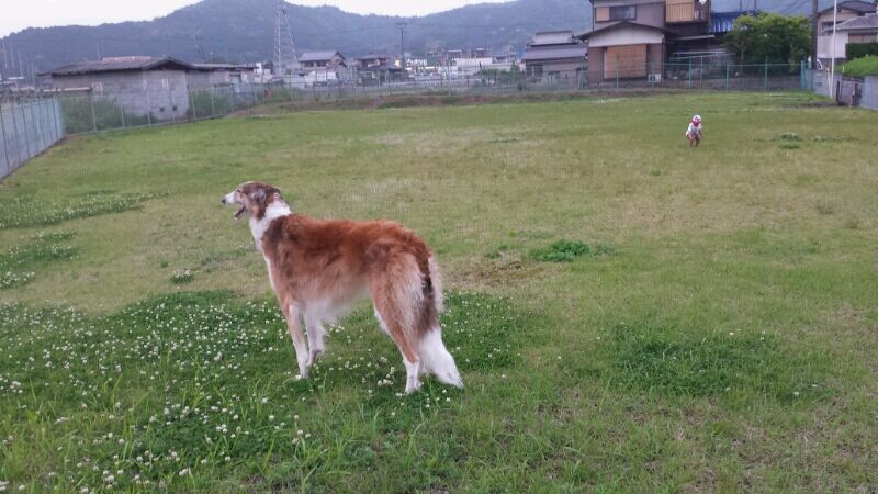 )今日の夕方は家族全員でお散歩かな