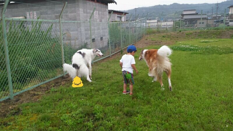 父ちゃんが知り合いの近所のおじちゃんと話してる間、ボーっと待つボルズ達