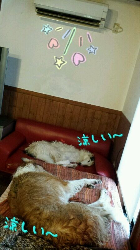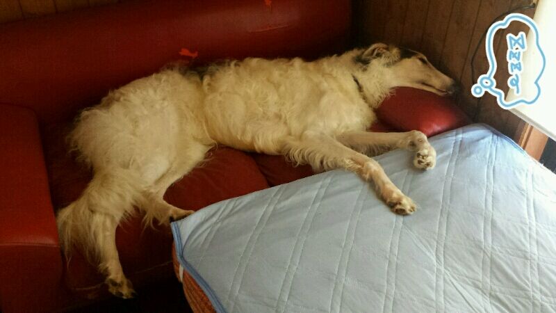 クーラーのきいたリビングで、ひたすら寝るバジル