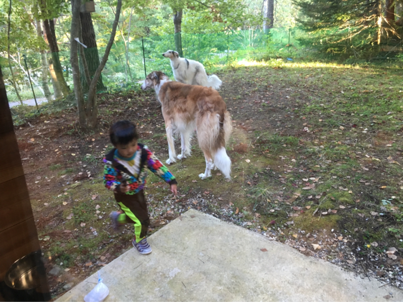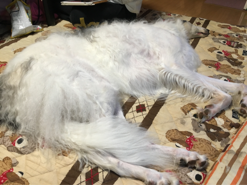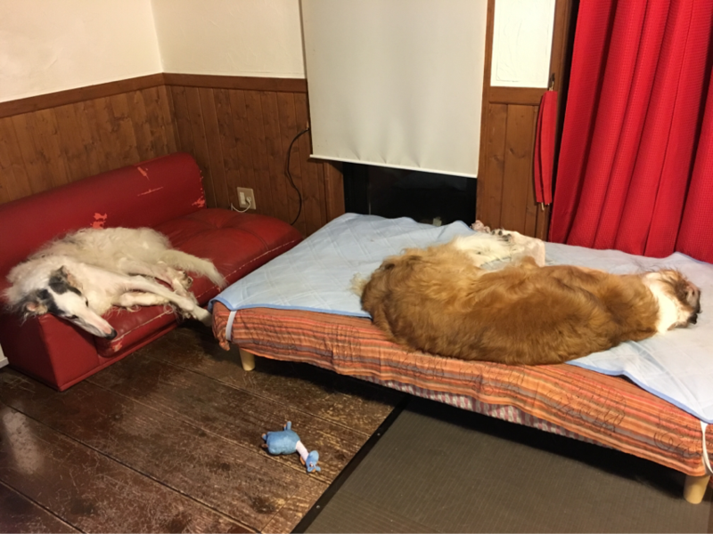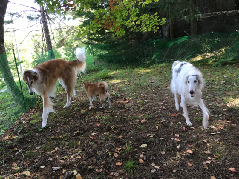 ボルゾイいって、柴犬に嫌われること多い気がするけど、これでも風ちゃんはボルズ達の事が好きらしい