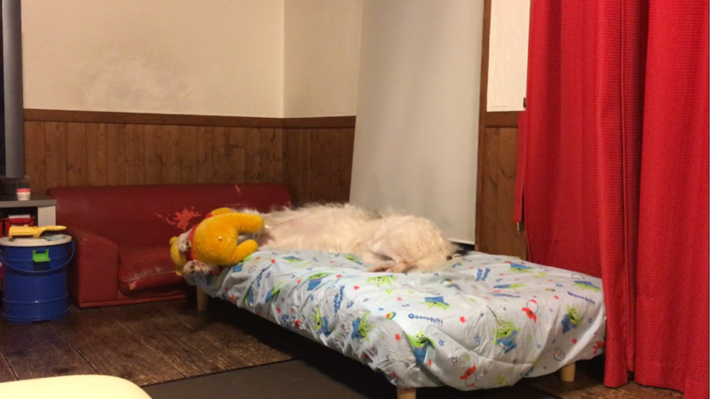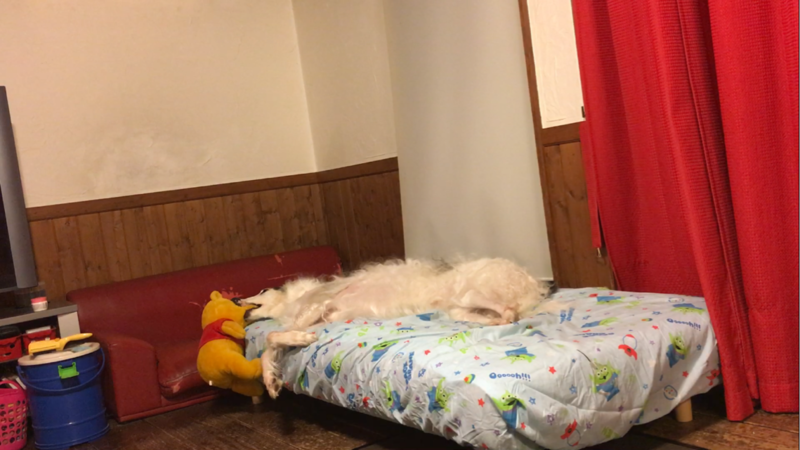 母ちゃんの横で寛いでるんだけど、、、