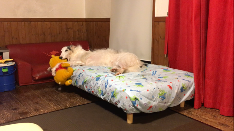 寝ながらプーさんと遊んでました