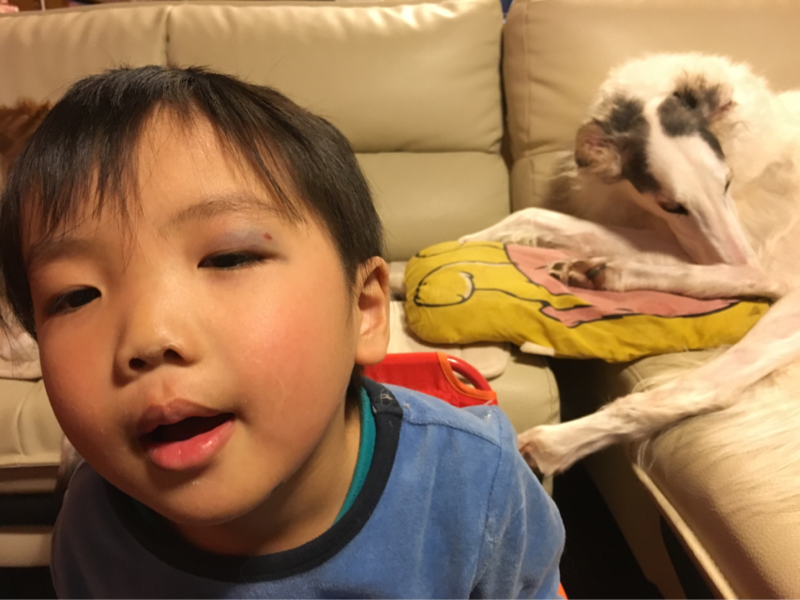 あっ、、、そう言えば、昨日の散歩ではしゃぎ過ぎて転んでたな