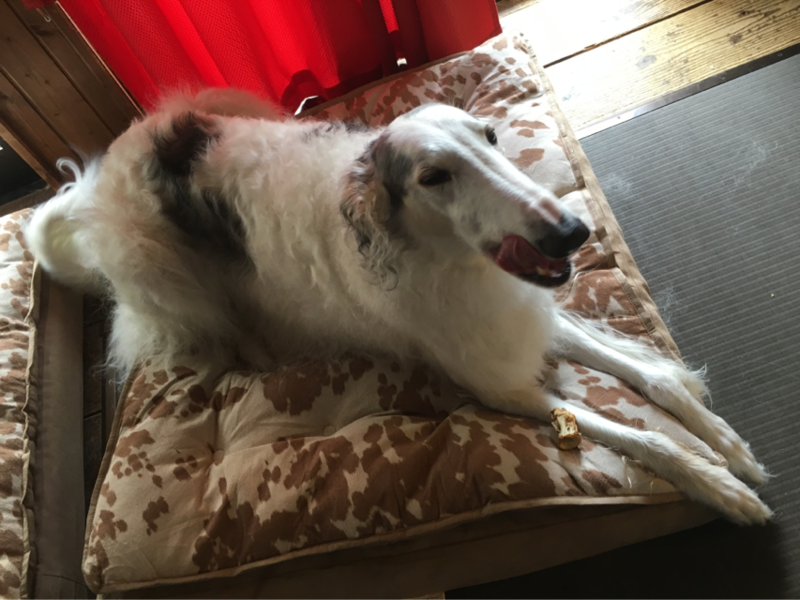 出掛ける直前にマグロの骨を1個あげてたんですが、ブッチ兄さんが心配だったのか...置いて行かれたのが悲しかったのか...珍しくオヤツを残してました。