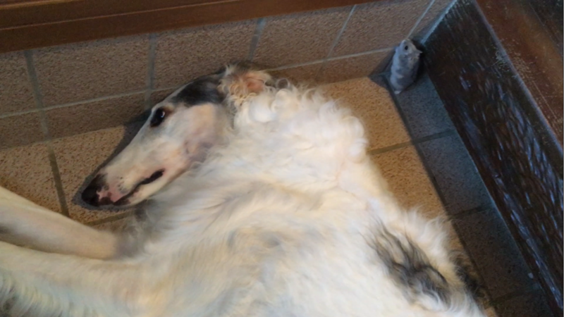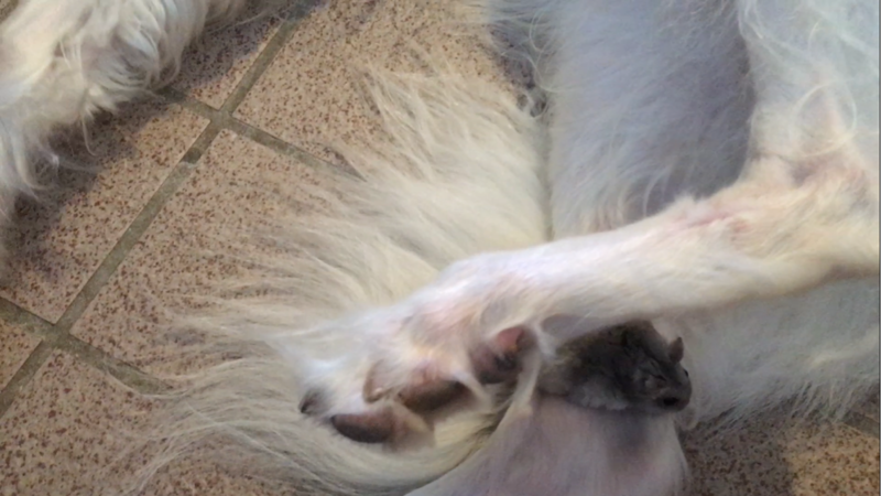バジルがビクッ!として頭を上げた瞬間、サササ~っと頭の下をくぐったハムちゃん