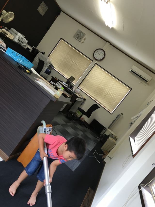 事務所、ルネ坊主が掃除機