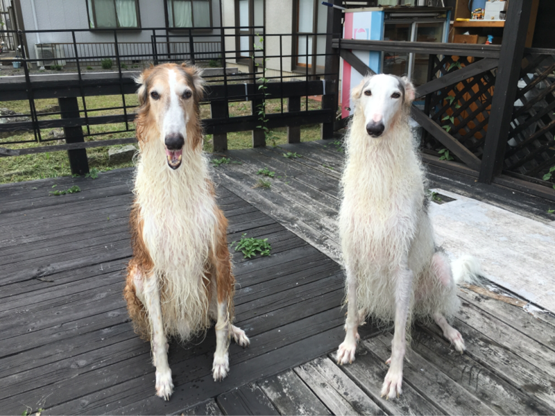 母ちゃん2頭一気に洗ってヘトヘトです