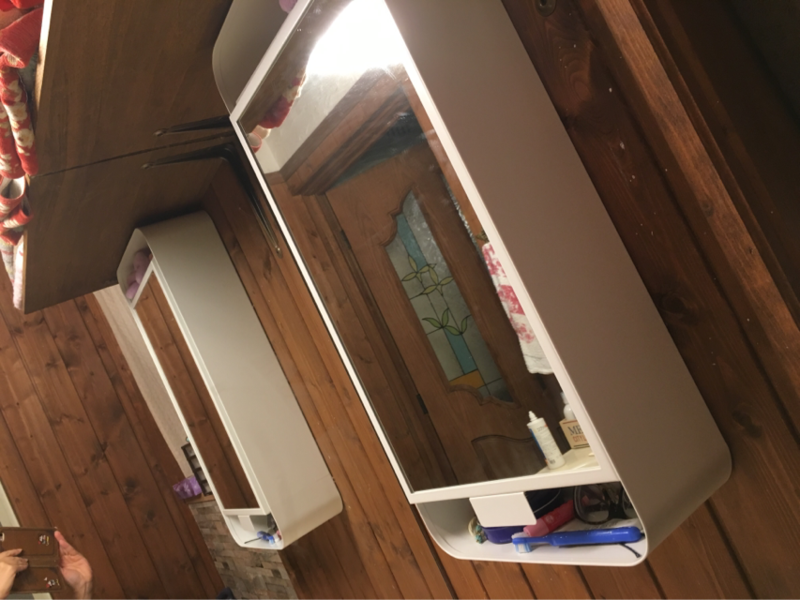 洗面所には鏡付き収納棚を