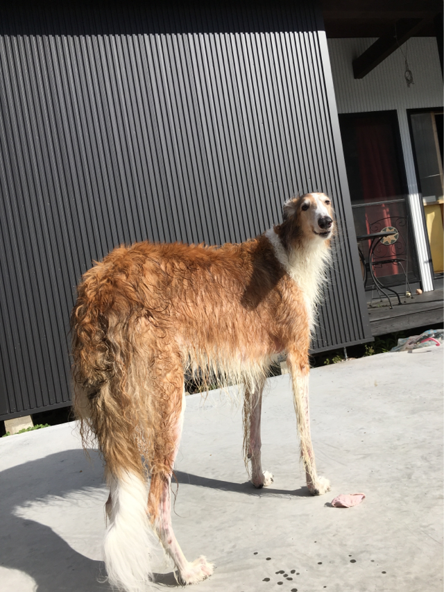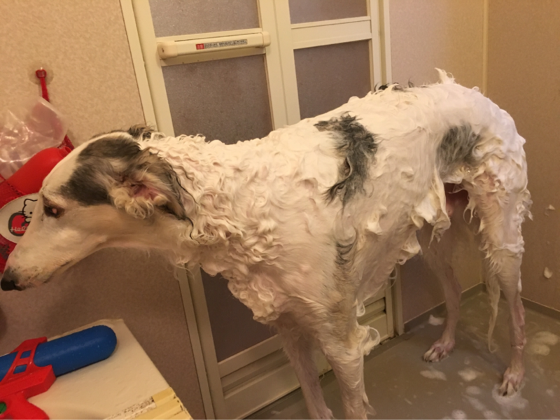 毎回お風呂場まで連れてくるのが大変なんですが、今日は珍しくオヤツで簡単に連れました