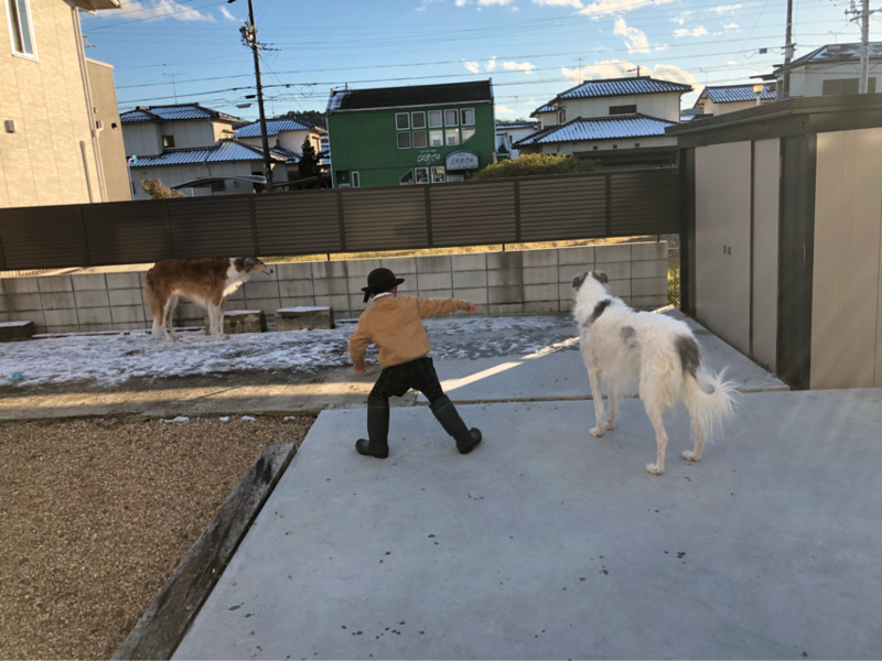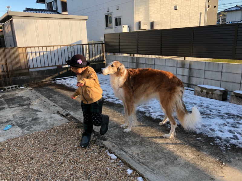 ルネ坊主、幼稚園から帰宅後すぐ庭へ