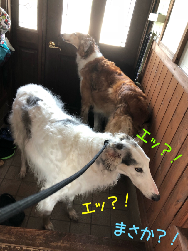 散歩バック持って、リード持ったら玄関に来た来たーーー