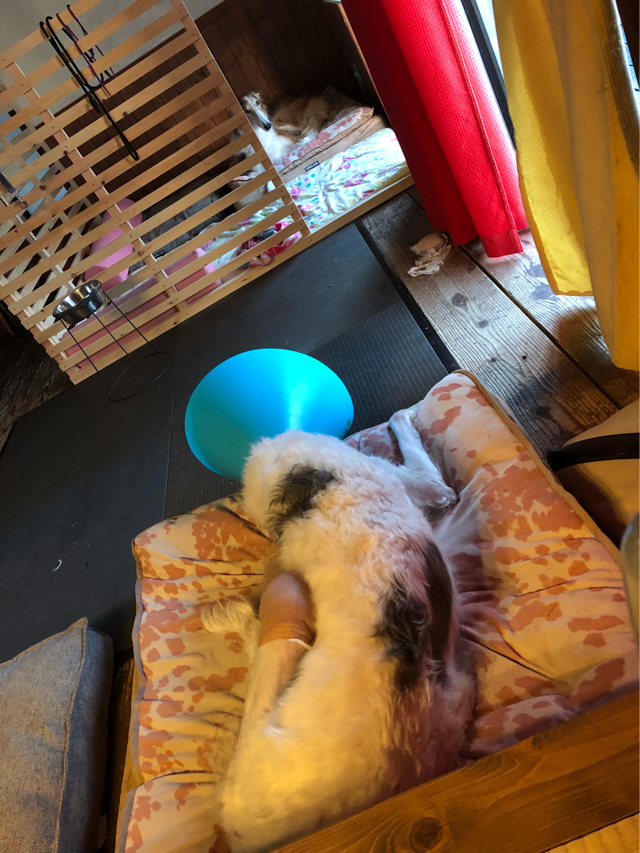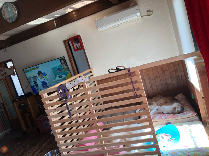 二頭で暴れ遊びないようにと作ったバジルの隔離部屋ですが、ブッチ兄さんの方が入ってる時間が長い...