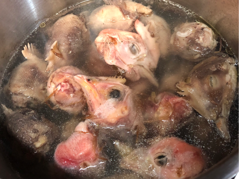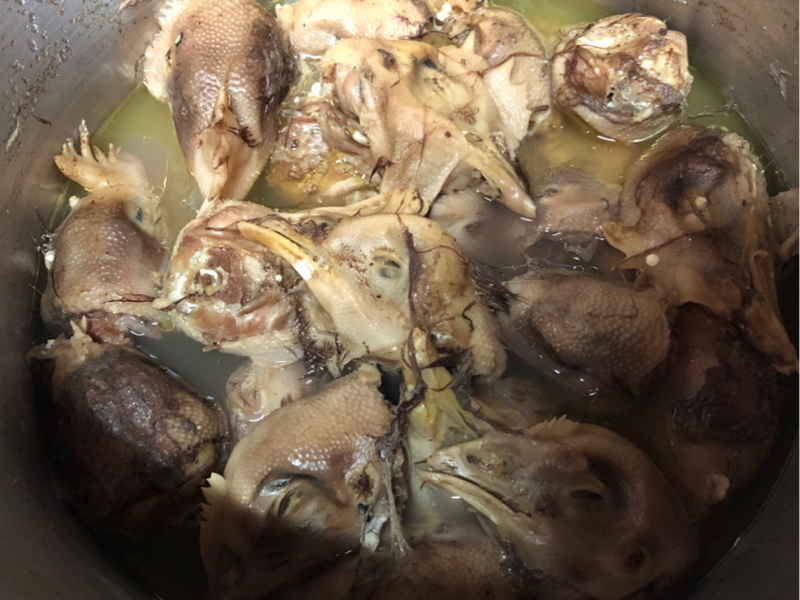 少し煮る時間が足りなかったのか、嘴がホロホロにまだなってなかったので、朝食分は取り除きました。