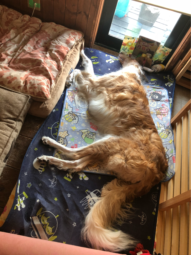 「おはよ」の言葉のお返しに、尻尾パタパタだけしてくれました