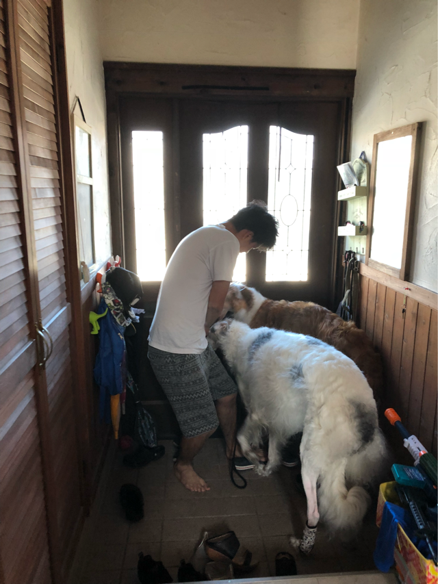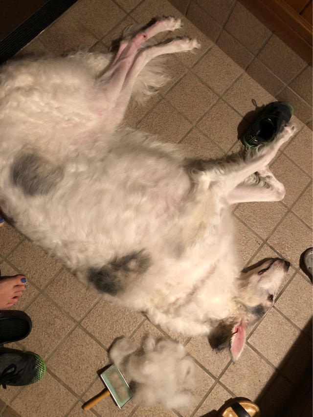 玄関で寝てた時に左半面ブラッシングして