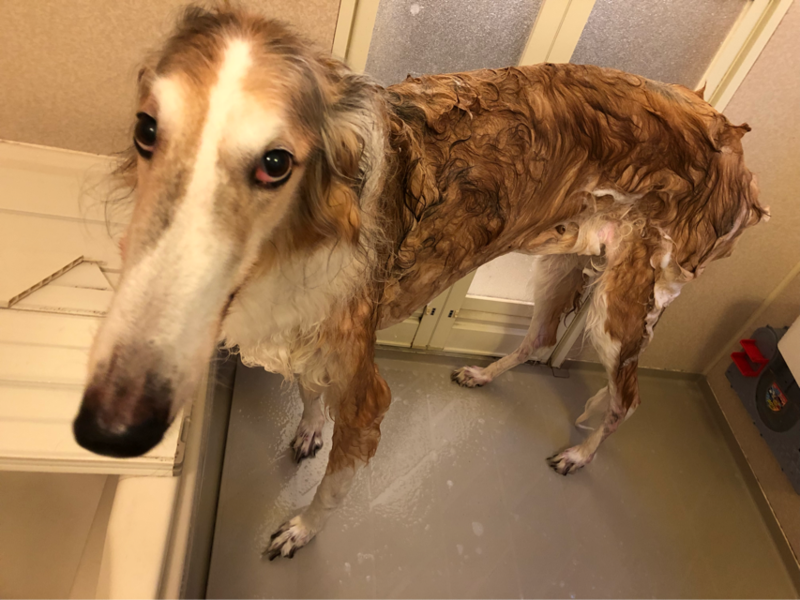 濡れてても太い...ボルゾイらしからぬ体型