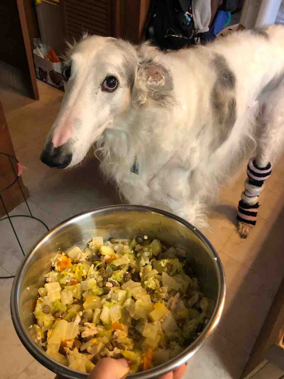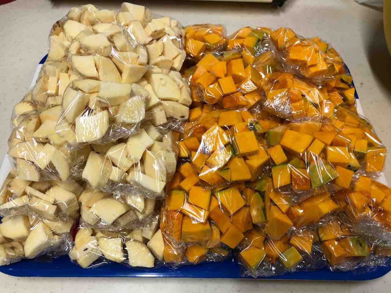 2021年02月18日 バジルご飯冷凍保存。 バジルご飯用のカボチャ🎃とサツマイモ🍠サツマイモ🍠の名前が「えいた君」って。朝からせっせと一気に🔪切りましたついでに白菜🥬も細かく切って、冷凍保存しときまーす朝ご飯白菜、カボチャ、サツマイモ、しめじ、鶏胸肉、犬用牛乳に、フードをトッピングカサ増し増しご飯の出来上がり切ったカボチャ🎃とサツマイモ🍠は小分けして冷凍庫に今日もしっかり食べましたご飯食べたらトイレへ