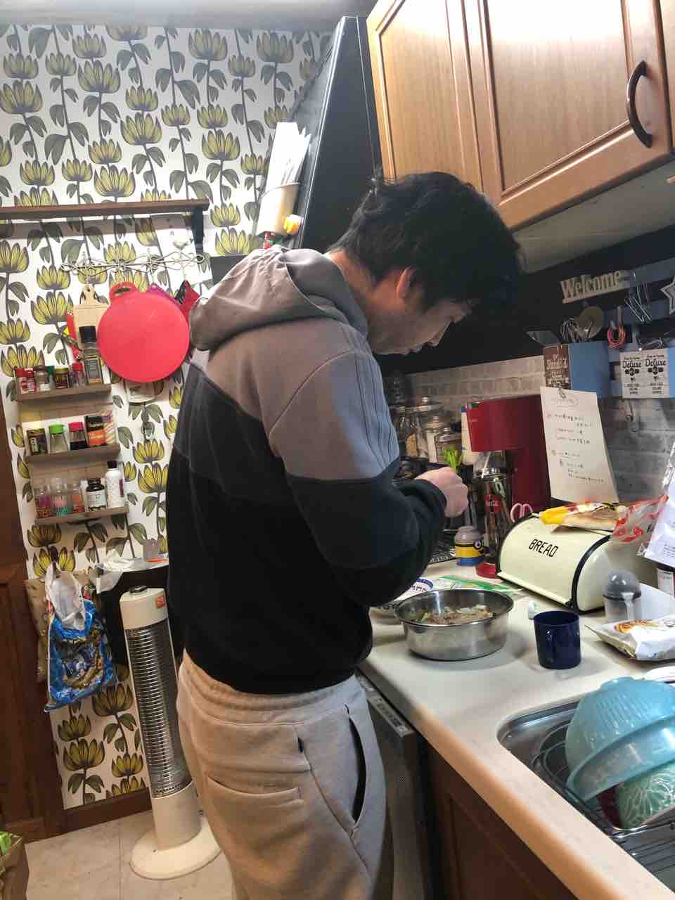 父ちゃんがバジルご飯の準備をしているところでした