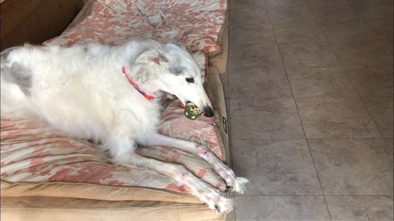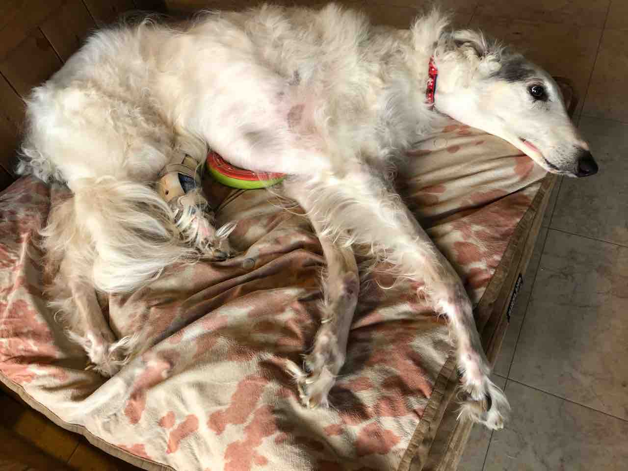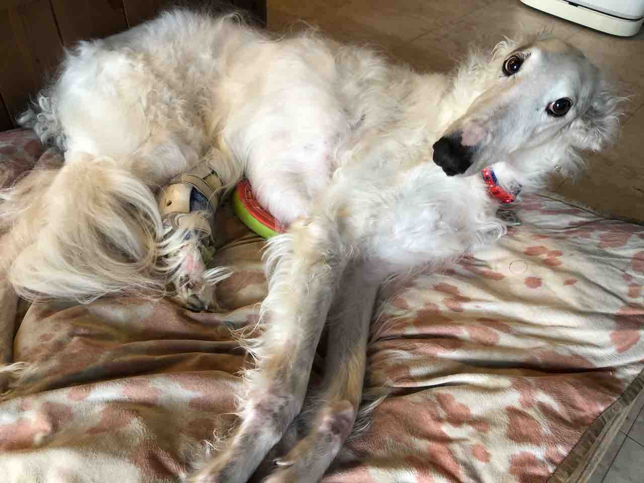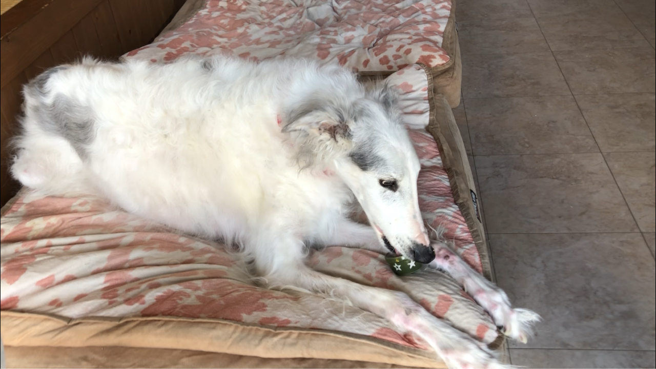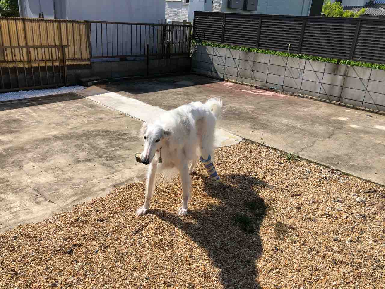 2021年06月05日 バジルの脚と皮膚。 今日の朝トイレトイレ〜また持ってますここ最近よくやるね〜「何か文句ある???」庭を軽くグル〜っとまわって戻ってから食べるまだ脚の痛みが少しあるようで、今日もピョコピョコ歩き散歩はお休みですお腹の下に、何か隠してるお腹の下にあったのは、、、犬用オモチャのフリスビー🥏でしたバジルが遊んでたわけじゃなく、弟が遊んで置きっぱなしにしてたねバジルは物が置いてあっても平気でその上に寝転がるタイプです夜身体のチェックしますよ〜脱毛、だいぶ止まってきたけど背中のへんがまだ少し抜けてます首周りは完全に脱毛止まりました全部抜けなくてよかったー