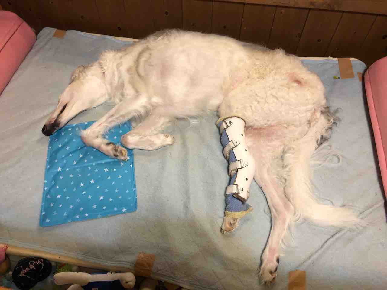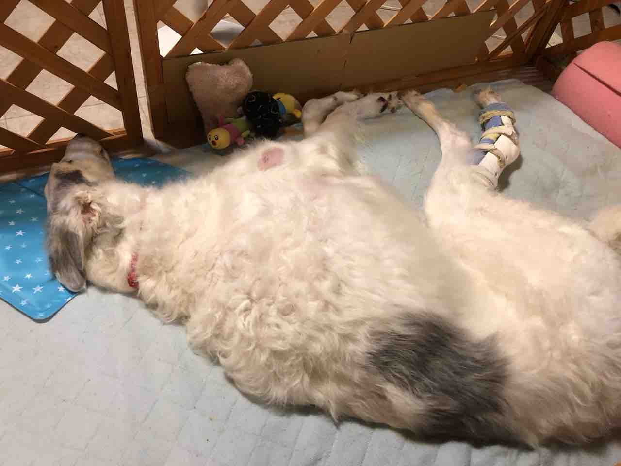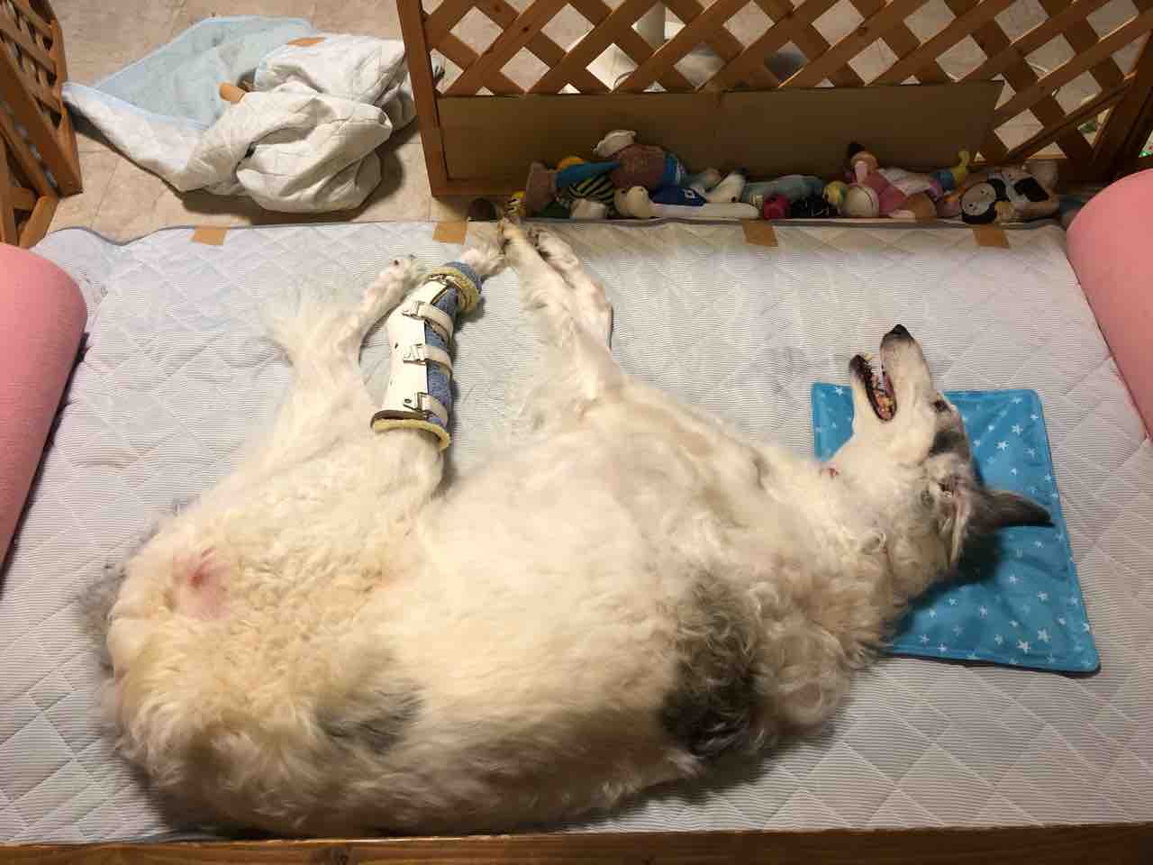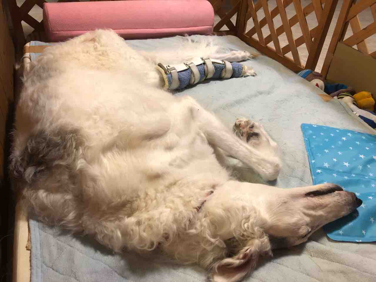 右前脚も後ろ左脚も同じように骨が溶けてきているんだけど、後ろは腫瘍が大きくなるのがめちゃくちゃ早い。体調は良いです。