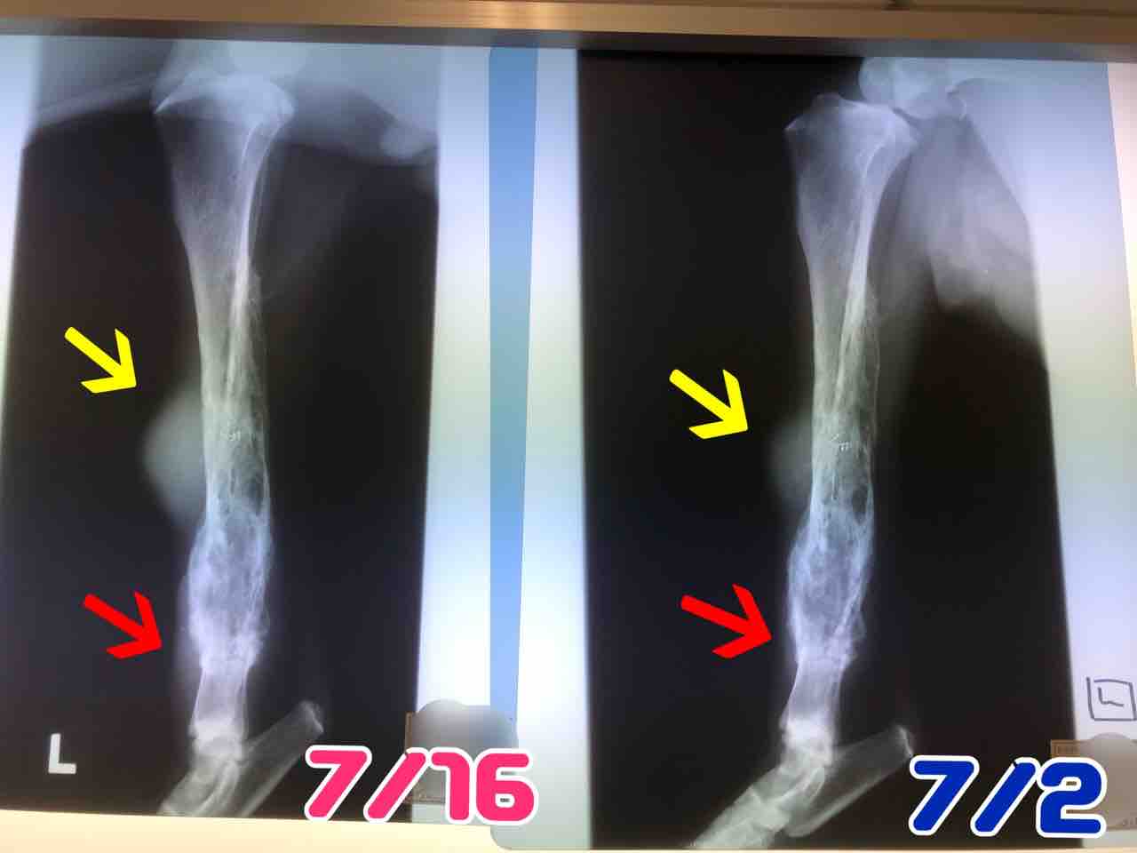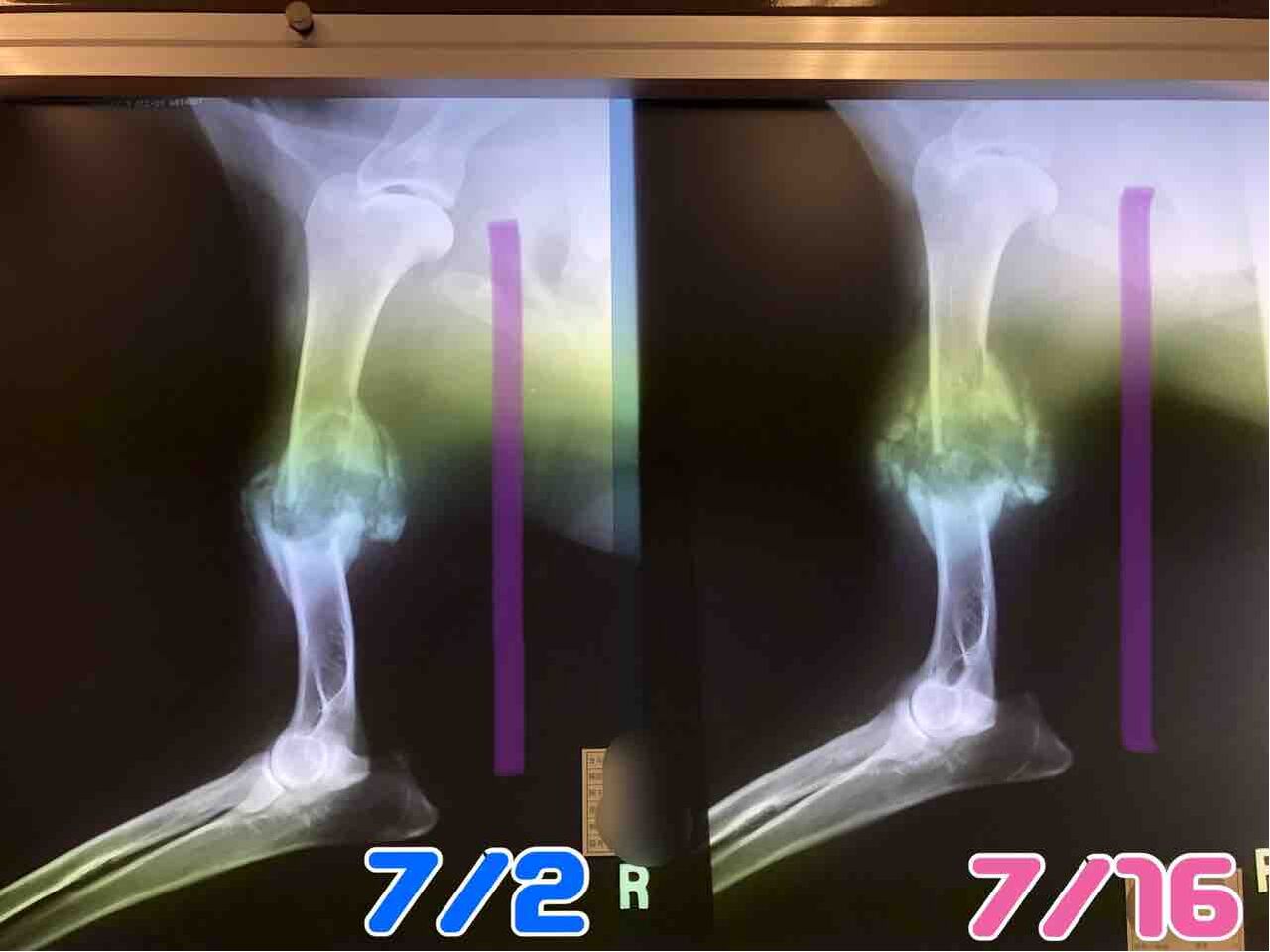 右前脚も後ろ左脚も同じように骨が溶けてきているんだけど、後ろは腫瘍が大きくなるのがめちゃくちゃ早い。