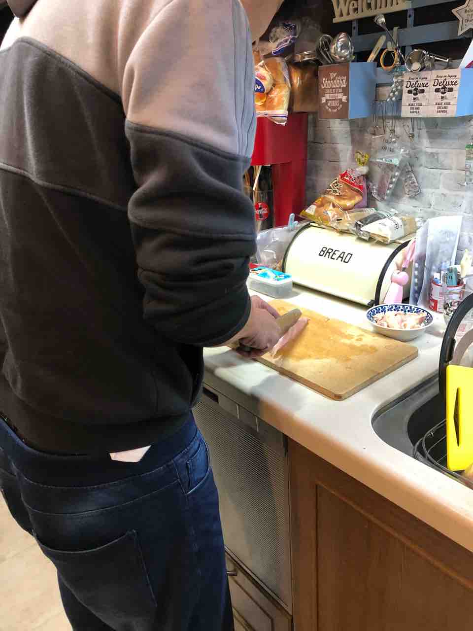 バジルのために手作り鶏胸肉燻製🐔作りです