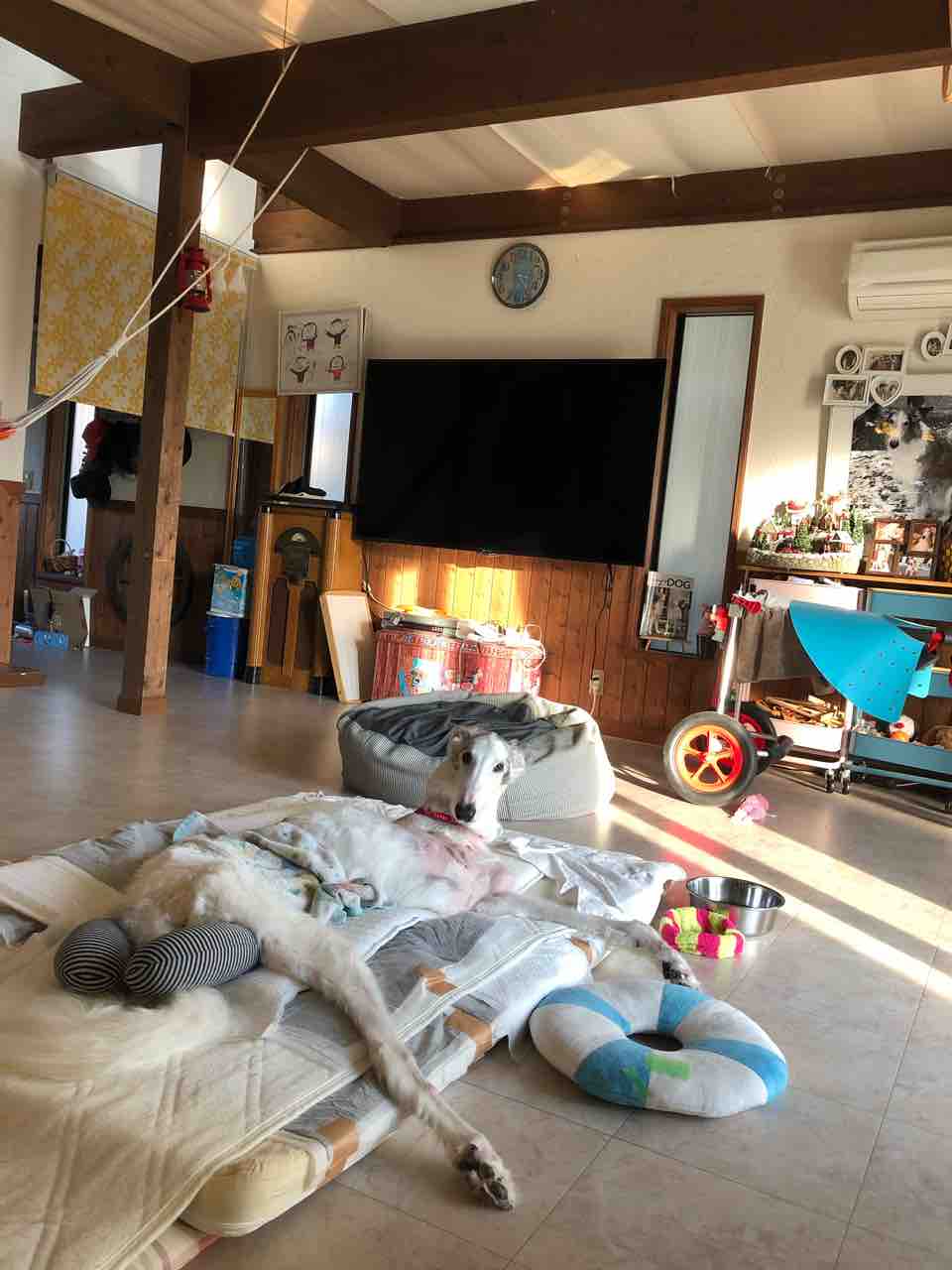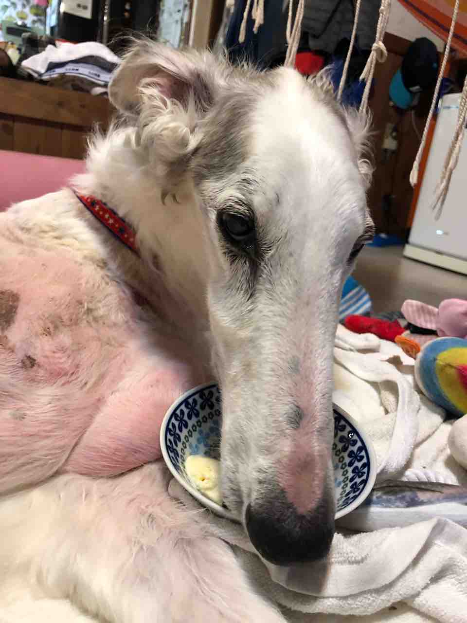 今日「ボルゾイな生活」の陸ぼんカイ父さんユリ母さんがバジルのお見舞いに来てくれました