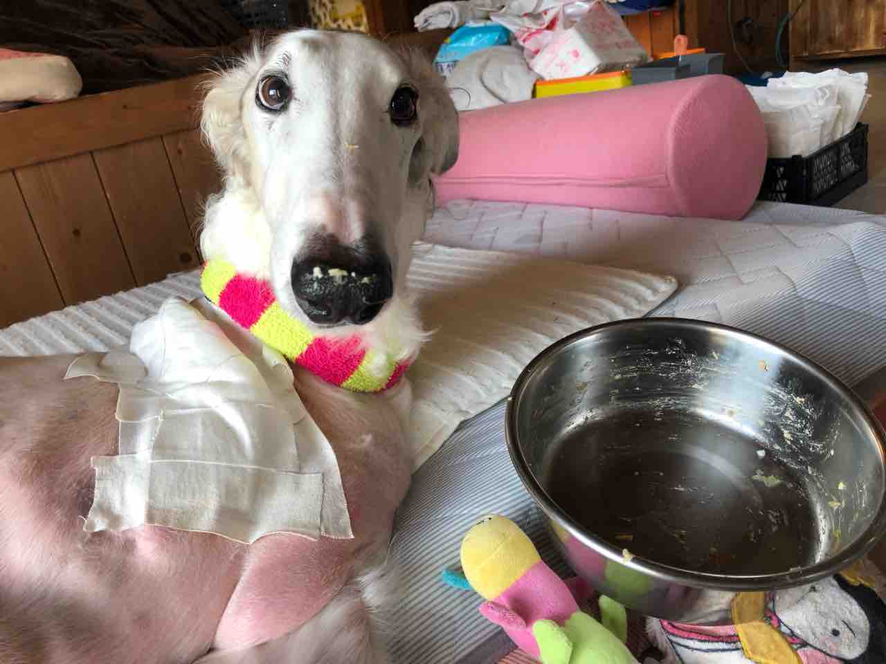 2021年10月31日 今日Halloweenだった!! 今日の朝ルネ坊主の野球練習試合準備があったので、朝からドタバタバジルの顔の前に朝ご飯出して、忙しかったので他ごとしてたんですが…見てなくてもしっかり食べてた朝💩出たし、調子良さそうだったので今日はお留守番お願いして、ルネ坊主の野球見学へまだ入団して2週間ですが、少し出してもらってました守り1回(レフト)攻撃2回(四球1、三振1)初試合、凄い緊張顔してたけど…私も緊張した。バジルのトイレ時間がきたので、慌てて帰宅お利口にお留守番できました眠そうな顔AM1:30に寝てAM5:00起き…私の方が眠いんですけど夕方、1時間半くらい仮眠をとりました夜ご飯バクバク今、手作りカッテージチーズと「Butch」にハマり中サッと食べてくれるのは本当にありがたいあっ、、、バタバタしててすっかり忘れてたけど。今日はHalloween🎃👻だったコスプレしとかなきゃね「お菓子くれないと、またカテーテル抜いちゃうぞ」笑それだけは勘弁してほしい