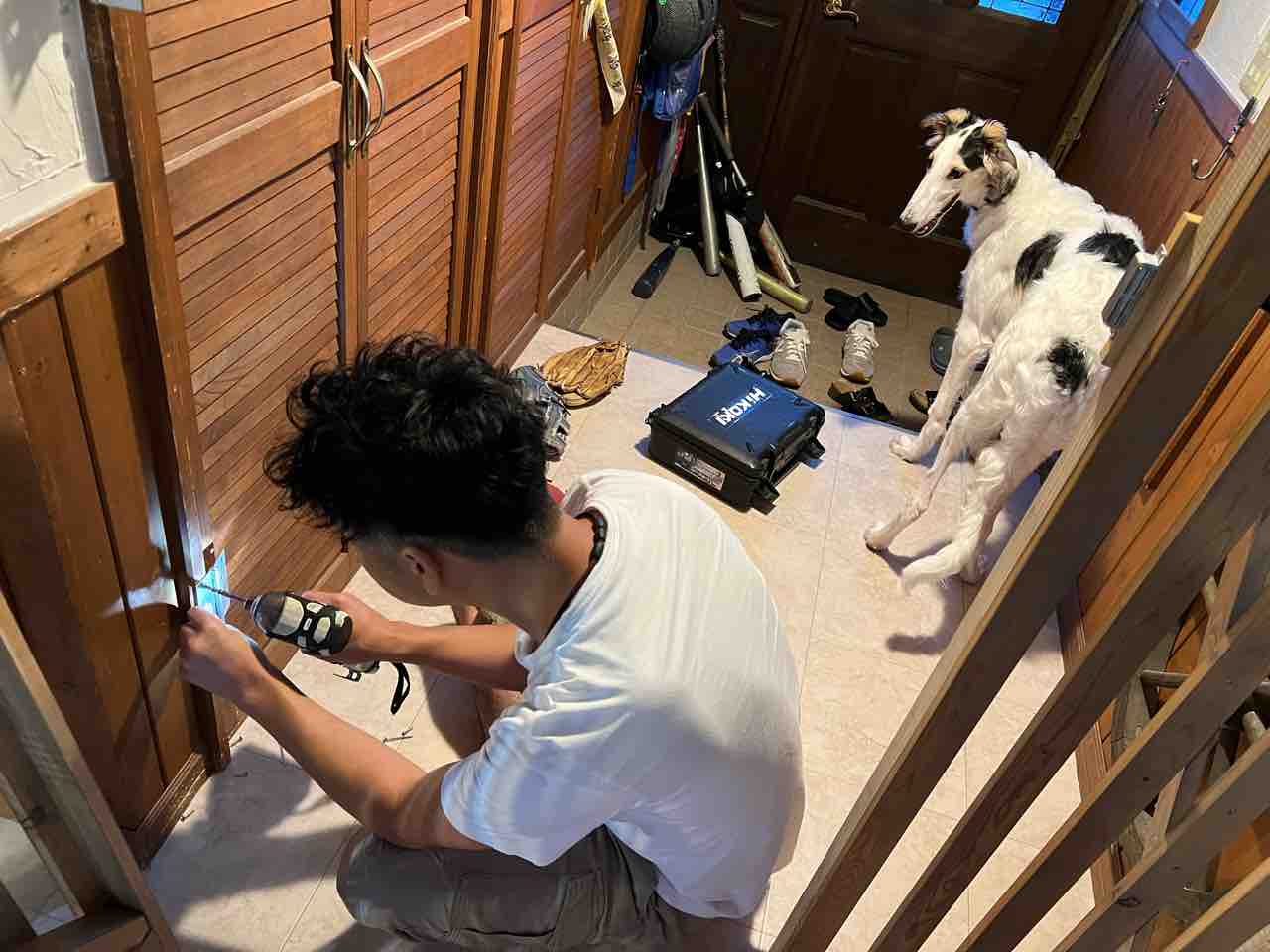 何かやってるかって…内開きを外開きに変更