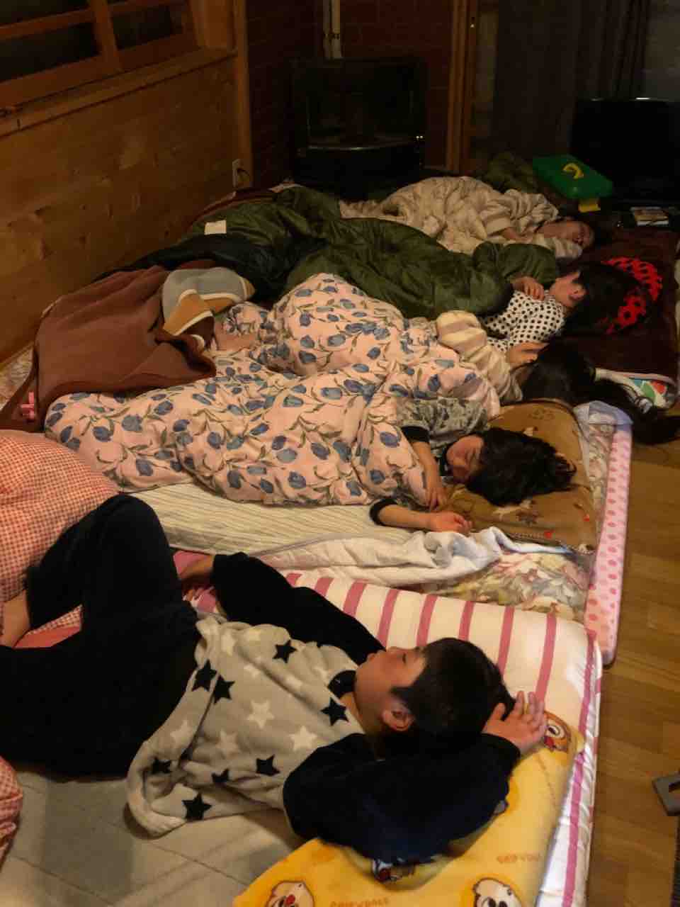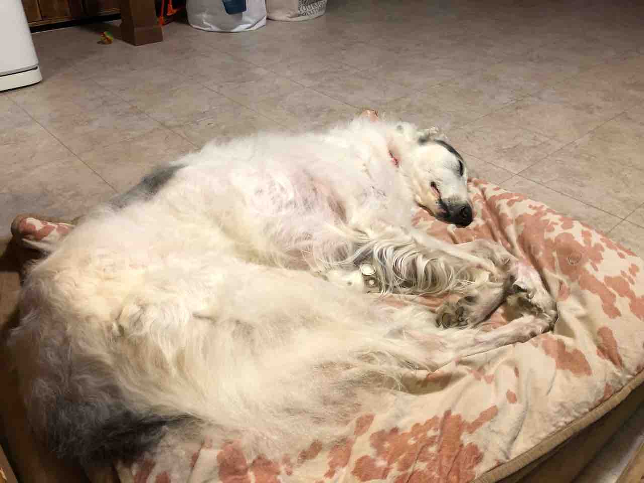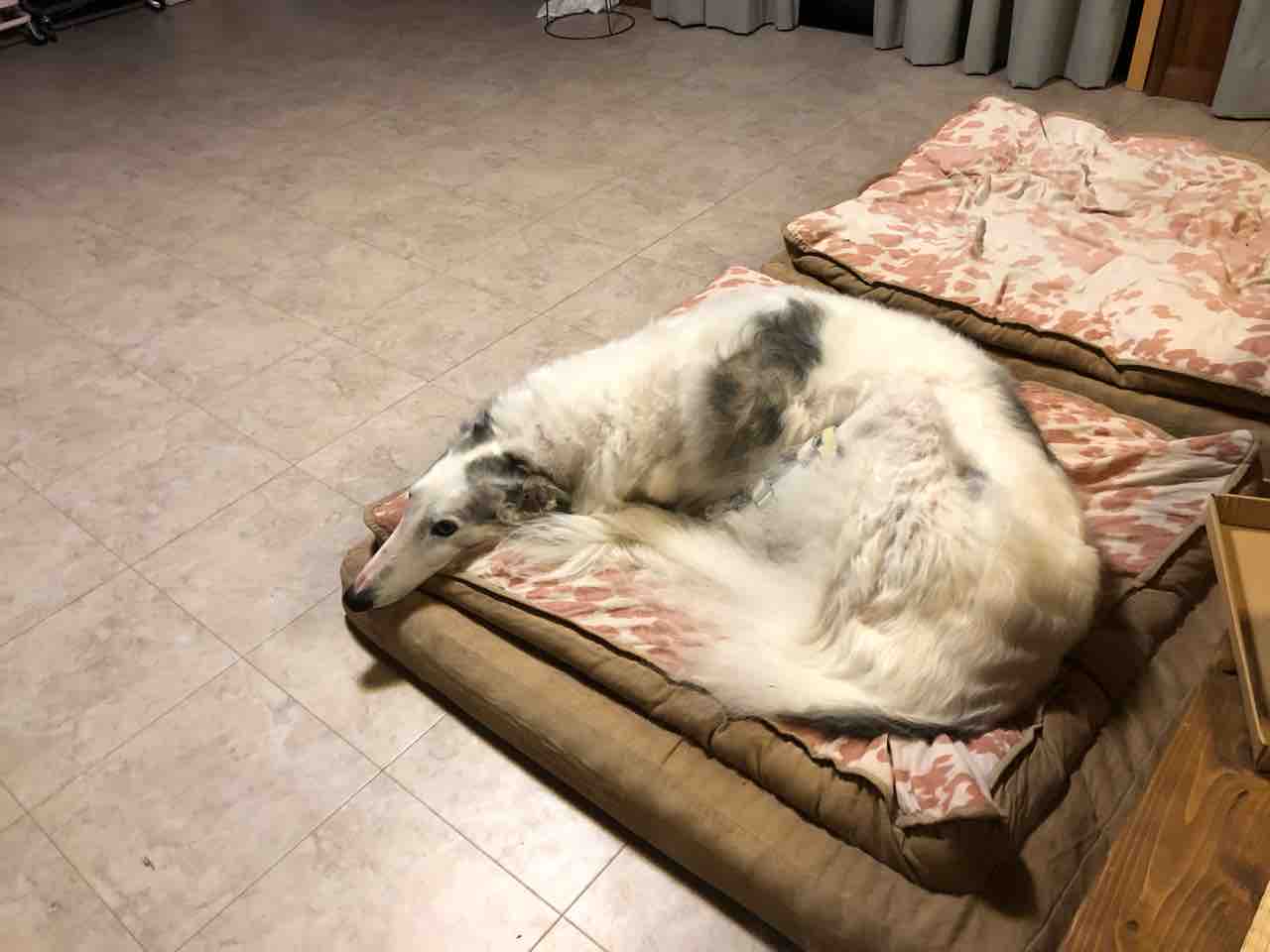 違う敷物持ってきたら、やっと上で寝てくれたよ