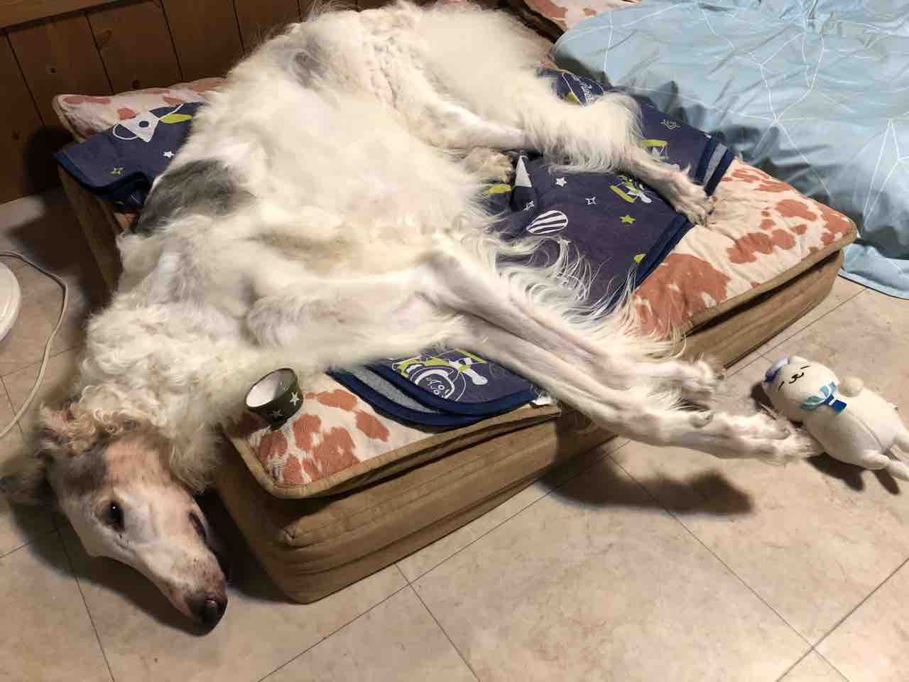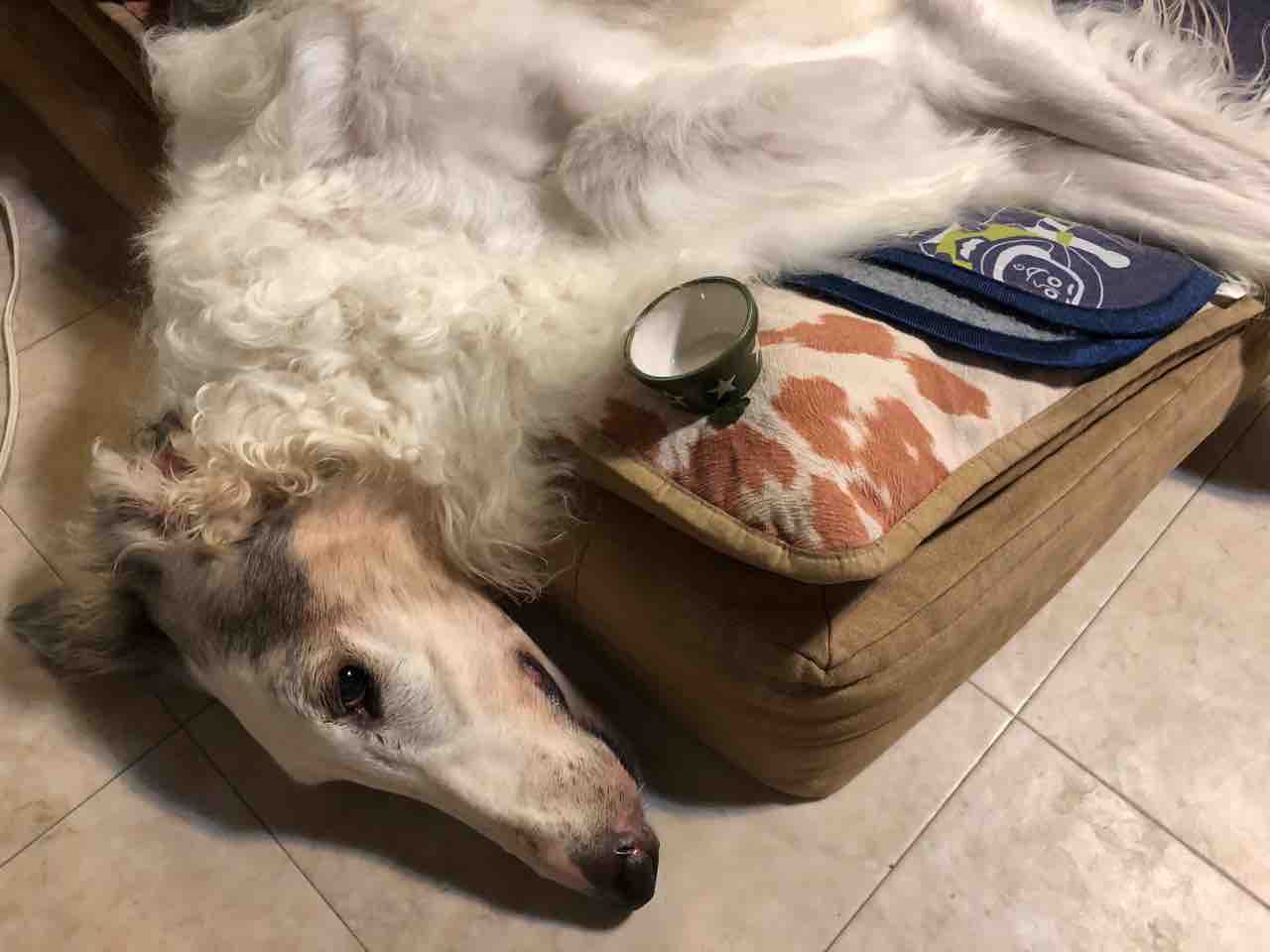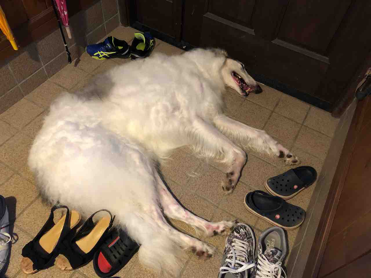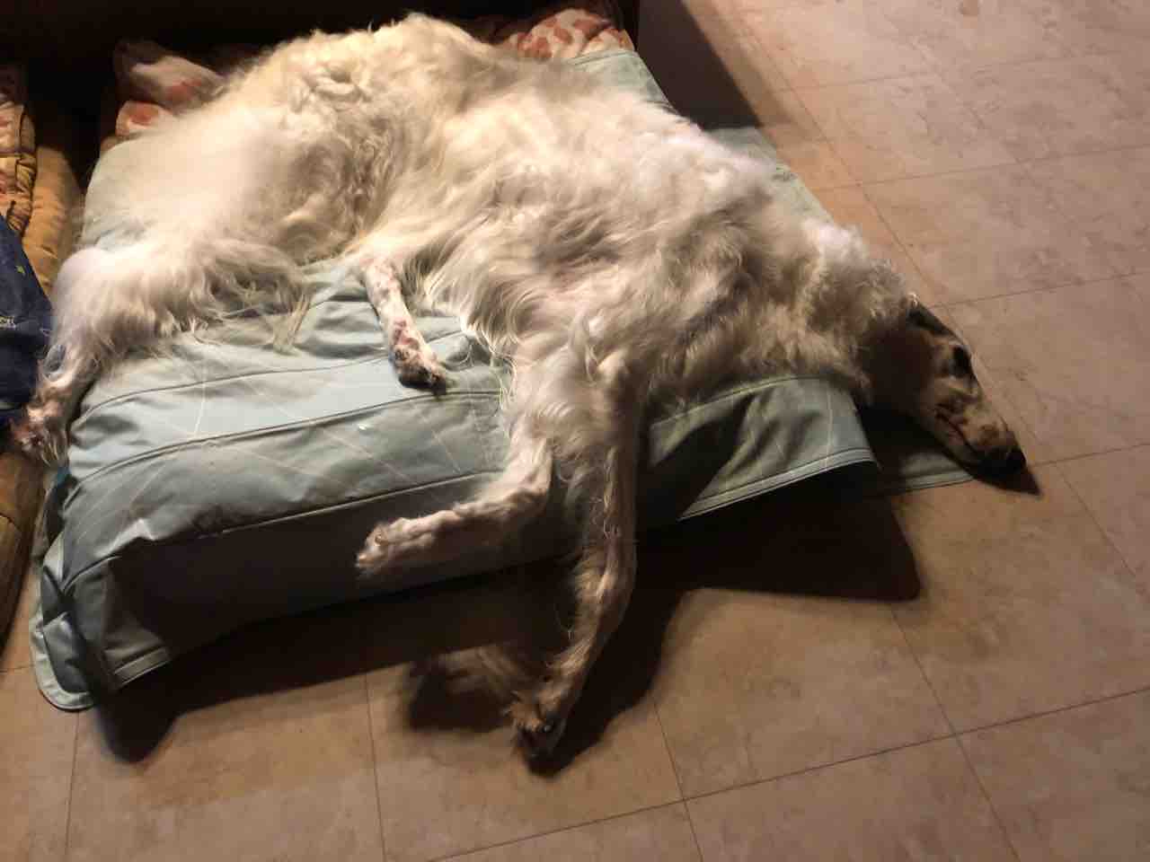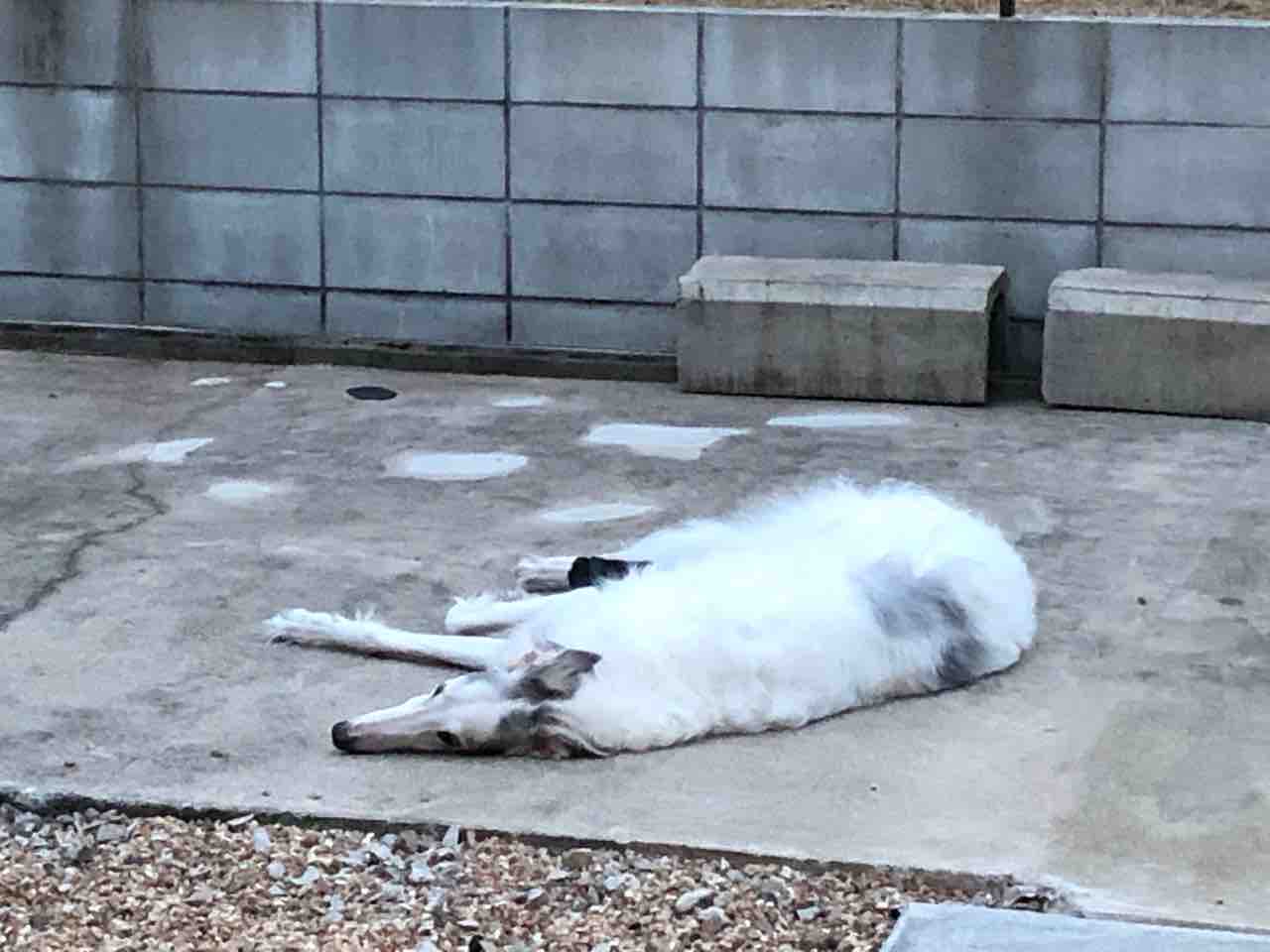 2020年09月19日 お泊まり会(o^^o) 楽しかったお泊まり会の夜いっぱい遊んで爆睡の子供達寝相が凄いまたまた可愛いクルミちゃん登場誰からのオヤツでも喜んで食べ...誰の膝の上にも座り...誰が呼んでも来るし...抱っこし放題...懐っこい犬のような猫。笑「シット!!」って言うと、お座りもします夕方みんな解散して、帰宅帰ってすぐバジルのお散歩へ行きました今日の散歩は涼しくて気持ちよかった散歩から帰ってくると、庭へそのまま外で横になりました気持ちよさそうこれからの季節は、ここで寝ることが増えるかな。ブログランキングに参加しています↓ボルゾイじゃないけど...可愛いね!のポチッとよろしくお願いしますにほんブログ村